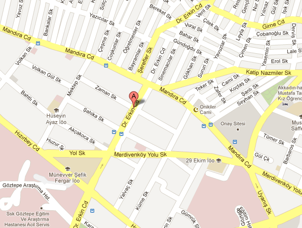 Adres : Dumlupınar Mh. Dr. Erkin Cd. No:31/C Göztepe Kadıköy İstanbul Telefon : 0 216 602 11 11 Telefon : 444 24 96 Harita :